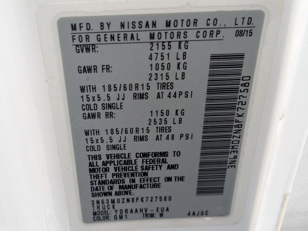 • Rear tires: 185/60TR15.0