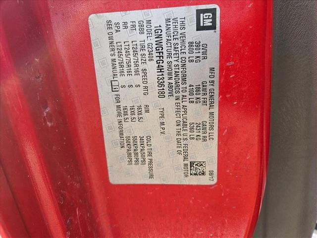 You can find this 2017 Chevrolet Express Passenger LT and many others like it at AutoNation Honda South Corpus Christi. This Chevrolet includes: ENGINE, VORTEC 6.0L V8 SFI FLEXFUEL Flex Fuel Capability 8 Cylinder Engine *Note - For third party subscriptions or services, please contact the dealer for more information.* The Express Passenger LT is well maintained and has just 95,550mi. This low amount of miles makes this vehicle incomparable to the competition. You can finally stop searching... You've found the one you've been looking for. More information about the 2017 Chevrolet Express Passenger: In a market that's evolving toward world models and lighter builds, the Chevrolet Express vans keep their body-on-frame design oriented for the U.S. market, with better towing capacity than most of the competition. Those interested in long-distance towing or fleet use may want to jump straight to the Duramax diesel version, which allows a GVWR of 9,900 pounds and a tow rating of 9,700 pounds. This model sets itself apart with high towing and weight ratings, available all-wheel drive, available diesel engine, tough truck-like construction, Strong set of V8 engines, and seats up to 15