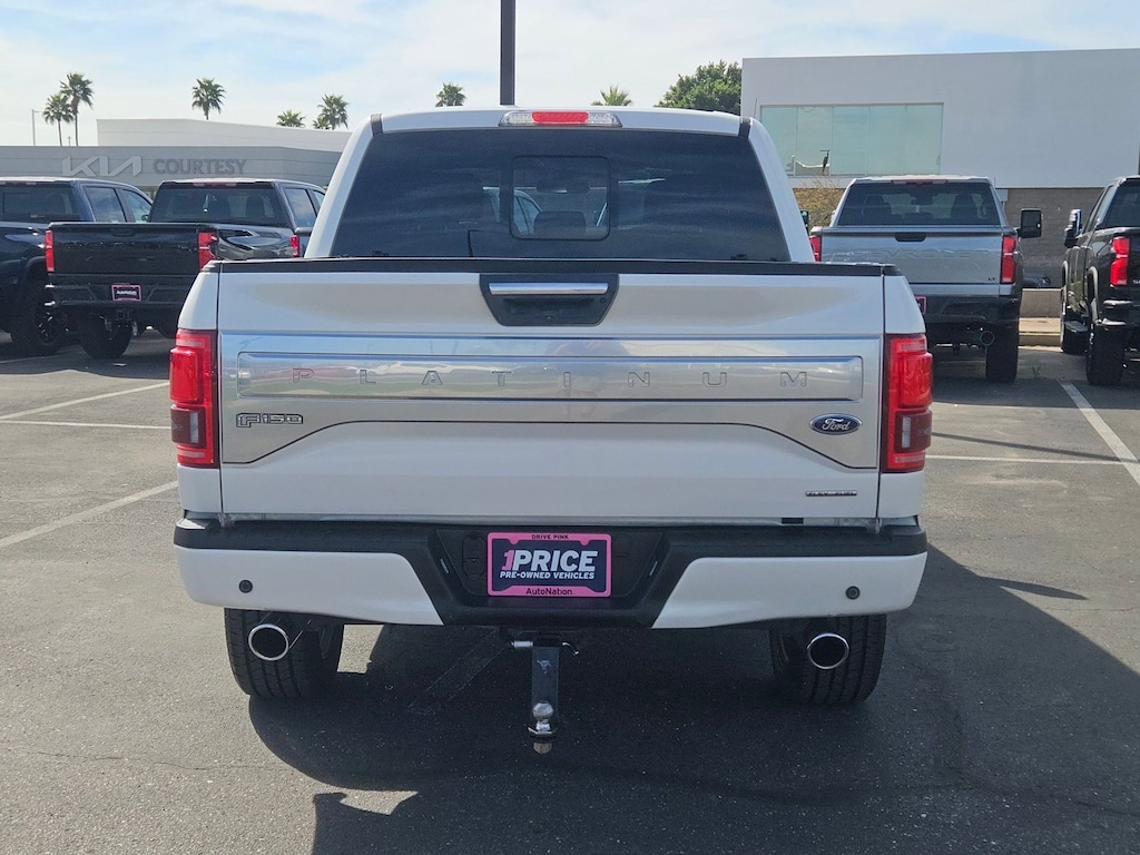 Thank you for visiting another one of AutoNation Chevrolet Mesa's online listings! Please continue for more information on this 2016 Ford F-150 Platinum with 137,450mi. For those who are ready to drive something more than just a car, this Ford F-150 Platinum will appeal to their idea of luxury and refinement. At home in the country and in the city, this 2016 4WD Ford F-150 Platinum has been wonderfully refined to handle any occasion. Smooth steering, superior acceleration and a supple ride are just a few of its qualities. Marked by excellent quality and features with unmistakable refined leather interior that added value and class to the Ford F-150 Platinum. With complete historical records, you'll know your next pre-owned vehicle, like this one, inside and out before you purchase it. Pre-owned doesn't have to mean "used." The clean interior of this Ford F-150 makes it one of the nicest you'll find. More information about the 2016 Ford F-150: The F-150 might be the most important vehicle made by Ford. It continues to be one of their top-selling vehicles, encouraging Ford to put their best foot forward with the 2016 model. The F-150 competes with the Ram, the Chevrolet Silverado and the GMC Sierra 1500, among others, in the full-sized truck category. Ford is clearly pushing its new technology and new ideas with the F-150, offering plenty of options not available anywhere else in this class, such as a 360-degree camera and integrated loading ramps stowed in the pickup bed. A smaller, more fuel efficient EcoBoost engine is also available, which should further improve fuel economy while providing the same kind of horsepower that would normally be delivered by mid-grade V8 engines. At the same time, the F-150 continues to excel at traditional truck tasks, with a best in class towing capacity of 12,200 pounds when properly equipped. Strengths of this model include available in a huge variety of trims, Towing capacity, efficient turbocharged engines, improved gas mileage, and rugged durability Call 480-615-4500 , click www.AutoNationChevroletMesa.com or visit AutoNation Chevrolet Mesa in Mesa, AZ today!