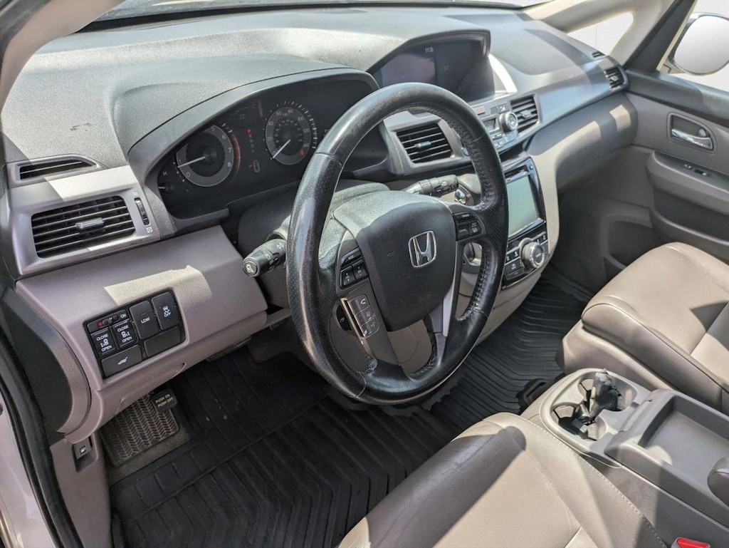 Check out this pre-owned 2014 Honda Odyssey we recently got in. The Odyssey EX-L is well maintained and has just 136,641mi. This low amount of miles makes this vehicle incomparable to the competition. This is the one. Just what you've been looking for. There is no reason why you shouldn't buy this Honda Odyssey EX-L. It is incomparable for the price and quality. More information about the 2014 Honda Odyssey: The 2014 Odyssey stands out from the pack by offering an especially thoughtful, versatile interior layout and stylish design. The Odyssey's 3-mode second-row seat is also a standout in its class, able to fold, widen for passenger comfort, or become narrower for easier access to the third row. And the Odyssey remains one of the sportiest-driving minivans available -- especially with respect to handling. Feature-wise, the Odyssey is the first minivan to offer an all-digital entertainment system with a high-resolution HDMI input to keep it compatible with modern electronics. For safety, Honda also claims to offer the most LATCH child seat positions of any vehicle -- a total of five to easily allow four child seats of any design. And for the first time, the Odyssey has earned an Insurance Institute for Highway Safety Top Safety Pick+, the highest honor ever bestowed upon a minivan. Interesting features of this model are top safety pick, innovative cargo storage, responsive handling, Bold styling details, smooth, refined ride, and living-room-on-wheels comfort and versatility