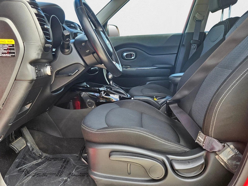 1-My son is 6ft7in, He fits fine in the soul, 2-Door upholstery cleans with free whips from Publics, 3-Seat comfort & adjustments are good, 4-Clearance off the ground - ie. some cars hit the curb when parking, 5-Has sporty tight suspension, handles well on roads, 6-Could have better gas milage=wife only drives automatic. 7-Last but not least: price under 20k. Wished I could add built-in rearview monitor on the base model. It is easy to get in and out of, is peppy enough to pass if needed, drives 85mph, has plenty of room, tight enough handling and VERY comfortable. Easy to park. Has blind spots on both rear sides. The bright color is easy for others to see. We all love this car every time we get in it!