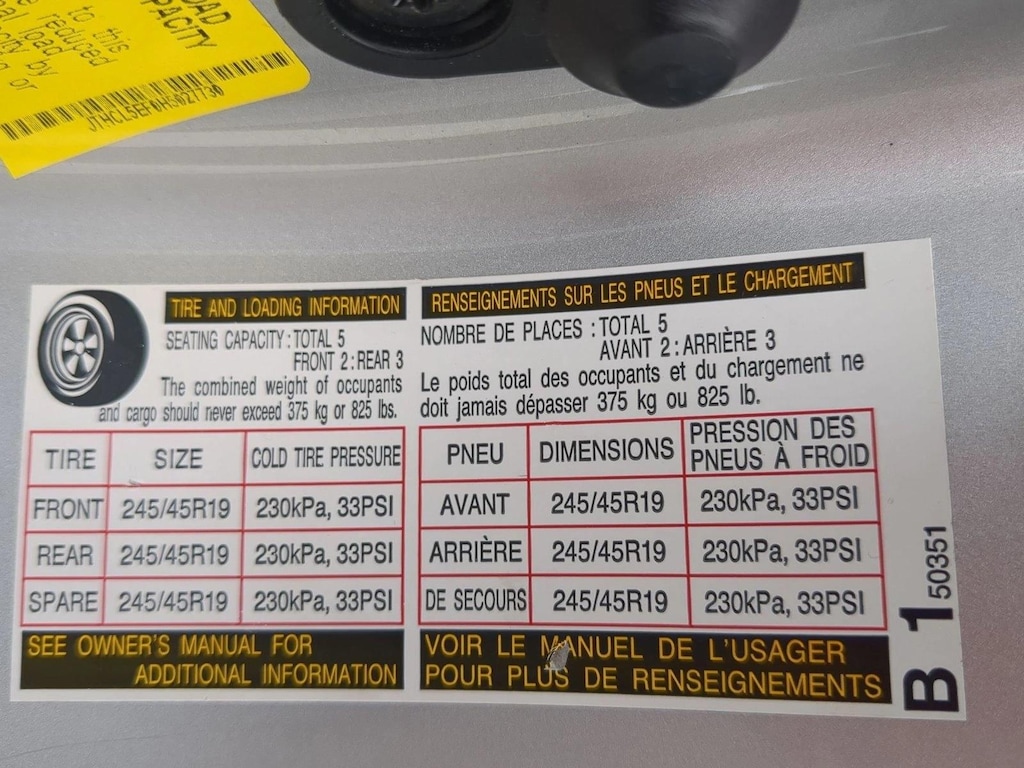 • Front tires: 245/45VR19.0