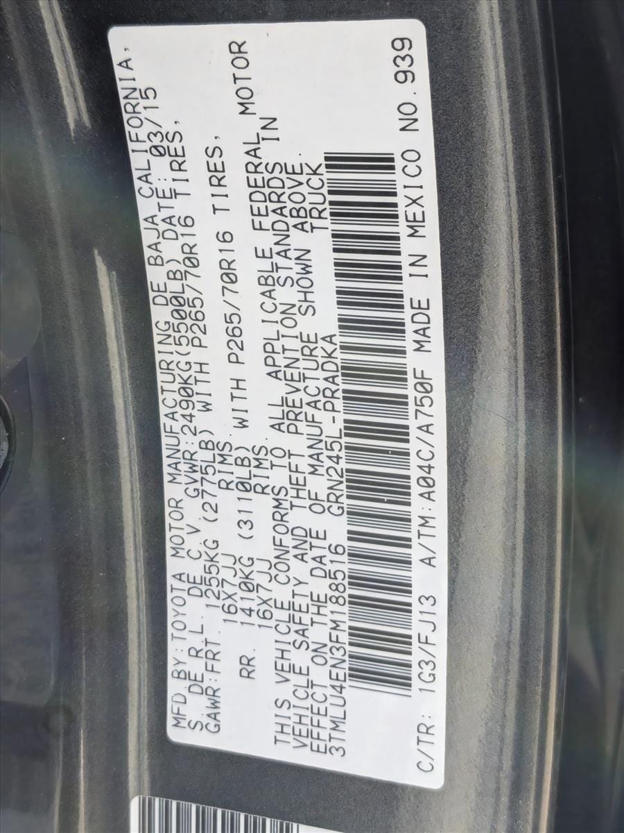 AutoNation USA Albuquerque is excited to offer this 2015 Toyota Tacoma . At home in the country and in the city, this 2015 4WD Toyota Tacoma has been wonderfully refined to handle any occasion. Smooth steering, superior acceleration and a supple ride are just a few of its qualities. The Tacoma has been lightly driven and there is little to no wear and tear on this vehicle. The care taken on this pre-owned vehicle is reflective of the 129,812mi put on this Toyota. Based on the superb condition of this vehicle, along with the options and color, this Toyota Tacoma is sure to sell fast. More information about the 2015 Toyota Tacoma: Spanning the range from basic work truck to well-equipped off-road or sport truck, the Toyota Tacoma gives truck enthusiasts what they need or want, without having to get a full-size pickup. Compared to full-size trucks, the Tacoma is more maneuverable and can be parked in places a full-size truck never could. With the 4-cylinder engine, the Tacoma is one of the most fuel-efficient pickups available. In Pre-Runner or rugged off-road forms, it's a good-looking sport truck serving a specialized task. While the interiors of Tacoma models are not particularly luxurious, Toyota has equipped the trucks with the latest in sound systems and infotainment. Strengths of this model include wide range of models, Gas mileage with 4-cylinder engine, affordability, and parking ease and maneuverability