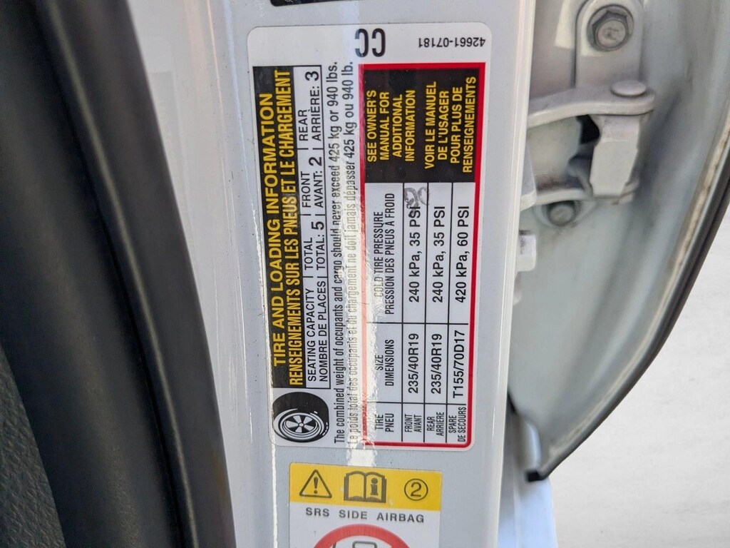 • Front tires: 235/40VR19.0