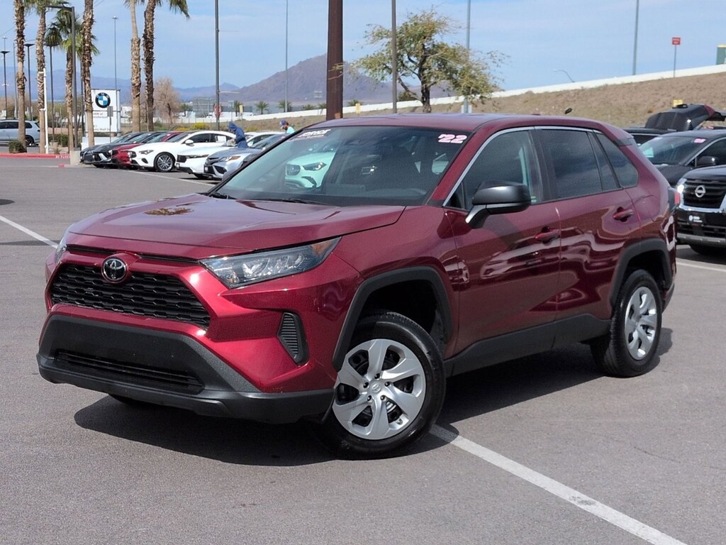 Contact BMW of Henderson today for information on dozens of vehicles like this 2022 Toyota RAV4 LE. This Toyota includes: RUBY FLARE PEARL BLACK, FABRIC SEAT TRIM Cloth Seats PAINT PROTECTION FILM (TMS) CARPET MAT PACKAGE (TMS) Floor Mats *Note - For third party subscriptions or services, please contact the dealer for more information.* This Toyota RAV4 offers all the comforts of a well-optioned sedan with the utility you demand from an SUV. The 2022 Toyota offers compelling fuel-efficiency along with great value. You will no longer feel the need to repeatedly fill up this Toyota RAV4 LE's gas tank, in part because of it's superb EPA rating. This 2022 Toyota RAV4 has such low mileage it has been parked more than driven.